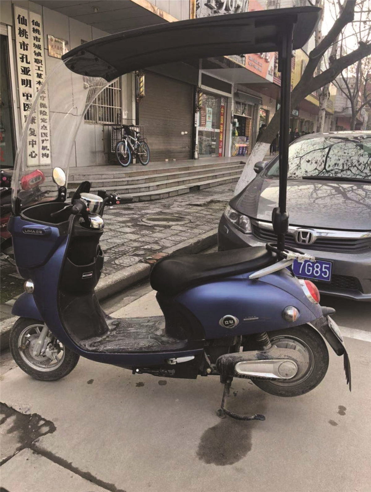 随后,记者沿桃源大道向东走,在桃源大道与宏达路交汇处,遇到一辆“立马”牌电动车,记者发现该电动车加装的遮阳篷较为坚固。车主刘女士(化姓)告诉记者,她在中雅电动车市场看到这款车自带遮阳篷,商家称车篷是出厂自带,车篷一体。“我看这个篷质量很好,不知道能不能不拆?”
