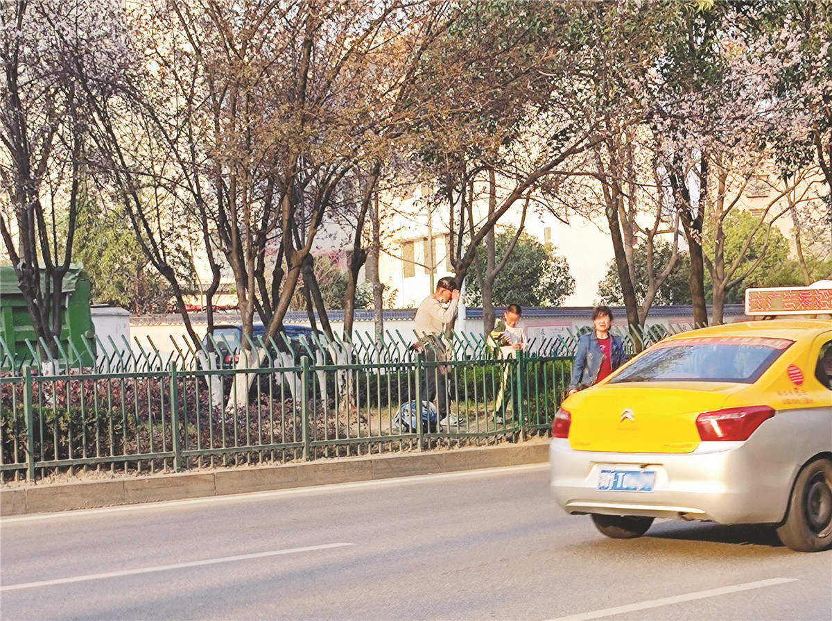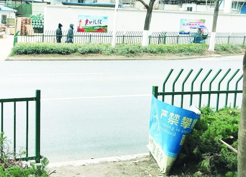 记者了解到,黄金大道尹台桥至前通路路段全长540米,长期以来附近部分居民习惯横穿马路,翻越中间花坛,造成绿化损坏严重,并且存在较大的交通安全问题。2020年,原园林部门对该段花坛安装了锌钢防护栏。但护栏安装后仍挡不住附近居民“抄近道”,护栏屡屡被拆毁。该部门多次组织维修和加固,并设置安全警示宣传牌,但收效甚微。