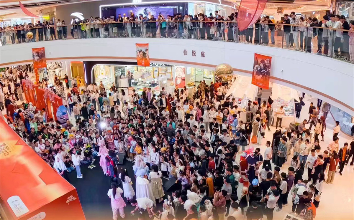 仙桃吾悦广场围绕“祝福祖国国庆快闪”“棋王雀神争霸”“山海会逢国漫展”等主题开展系列活动,人潮涌动。