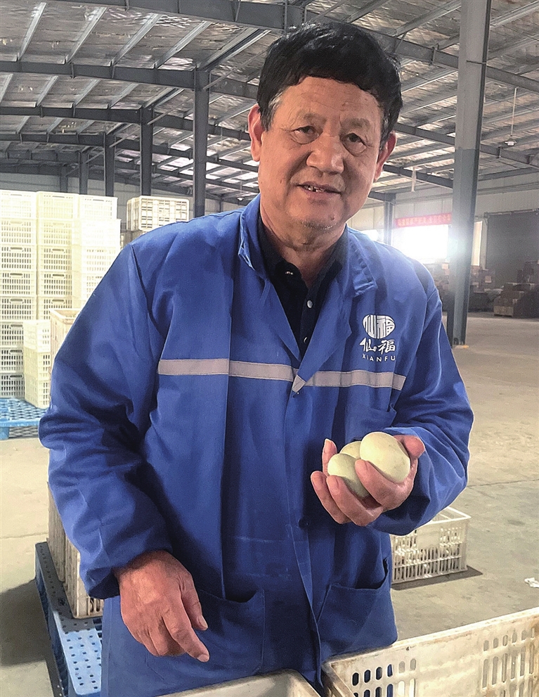 秦为俊,男,69岁,沙湖仙福食品有限公司总经理。“沙湖皮盐蛋”为省级非物质文化遗产,秦为俊15岁时学做皮盐蛋,勤奋好学且为人忠厚,从学徒一直做到厂长兼蛋厂的技术“掌脉人”。2011年11月,57岁的秦为俊投入全部积蓄,成立了仙桃市仙福食品有限公司。他诚信经营,“仙福”蛋品品质得到消费者认可。短短几年间,公司产品远销全国20多个省市,并被国家邮政总局纳入服务三农绿色产品的“慧农合作示范点”。他组织沙湖镇及周边10多家禽蛋企业、作坊,成立了沙湖镇禽蛋协会,组团发展,打造区域共用品牌,带动厂区周围村居50多个脱贫户稳定就业。