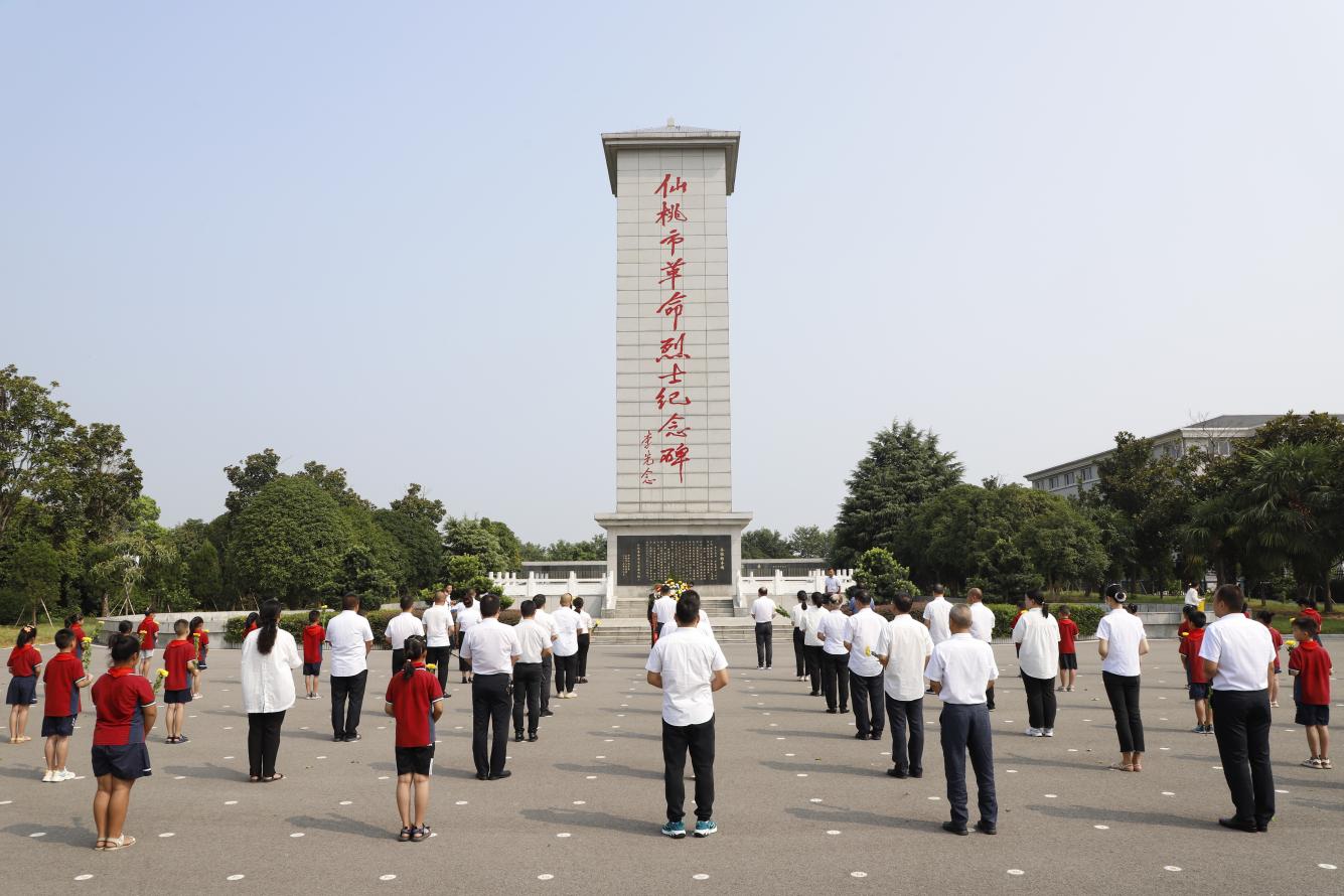 活动在庄严的国歌声中开始,全体人员静穆肃立向革命烈士默哀,在《献花曲》的旋律中为革命烈士敬献花篮。之后全体人员瞻仰纪念碑,缓步上前,注目凝视,送上一束束鲜花寄托对革命英烈的无尽哀思和崇高敬意。