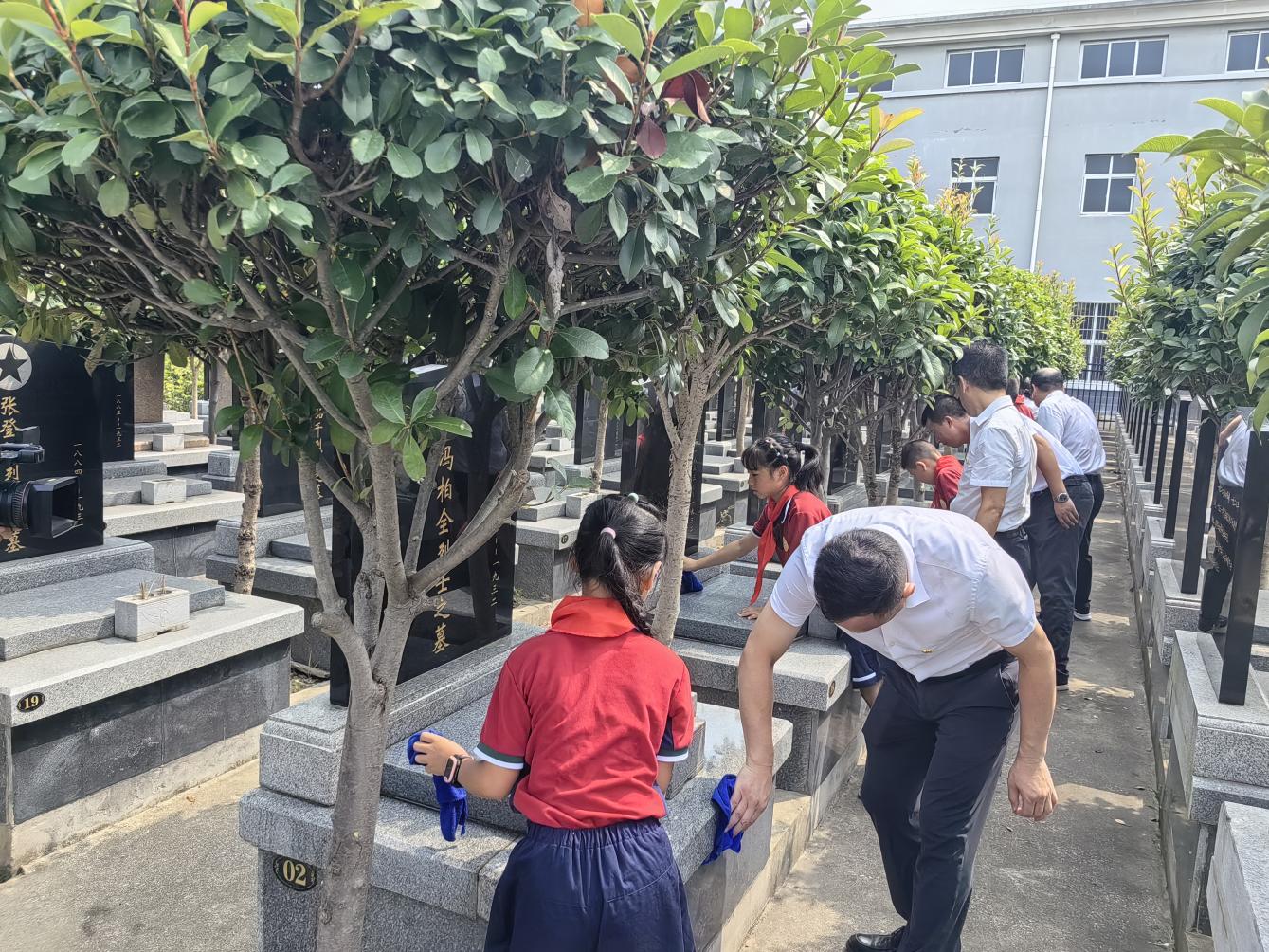 随后为革命烈士擦拭墓碑。全体人员对墓碑一一仔细擦洗,清扫落叶,除去浮尘,让烈士墓碑干净整洁、焕然一新。