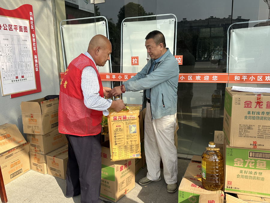 解放街社区邀请老年人相聚一堂,载歌载舞,边品尝美食边聊天话家常,畅谈生活点滴,现场气氛温馨和谐,热闹非凡。蔡帮社区全体党员干部则上门为辖区内60周岁以上的老人免费送去米、面、油等慰问品。