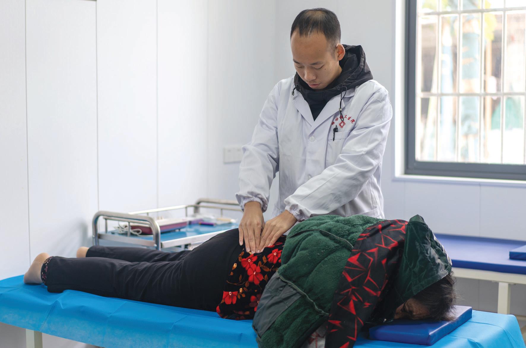 麻港中心卫生室,大学生村医胡泽云正在为村民做理疗。