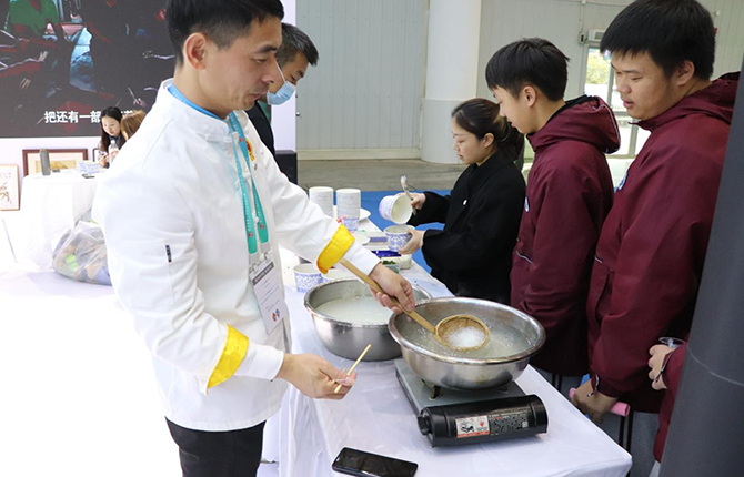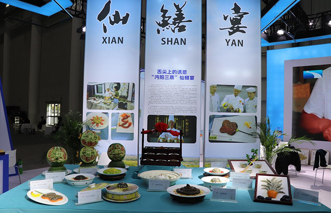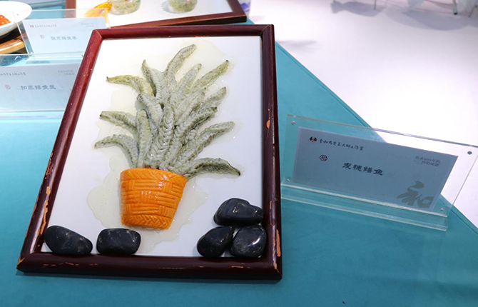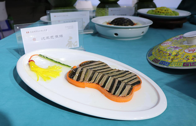 在技能成果展示区,仙桃人餐桌上的独特养生菜肴——仙鳝宴映入眼帘,鲜活肥美的仙桃鳝鱼,经由“仙桃鳝农”们的烹饪制作后,变幻出上百种可能,炕蒸芭蕉鳝、盘龙鳝、麦穗鳝鱼、酿蒸鳝鱼卷、清汤菊花鳝等一盘盘佳肴令人食指大动。