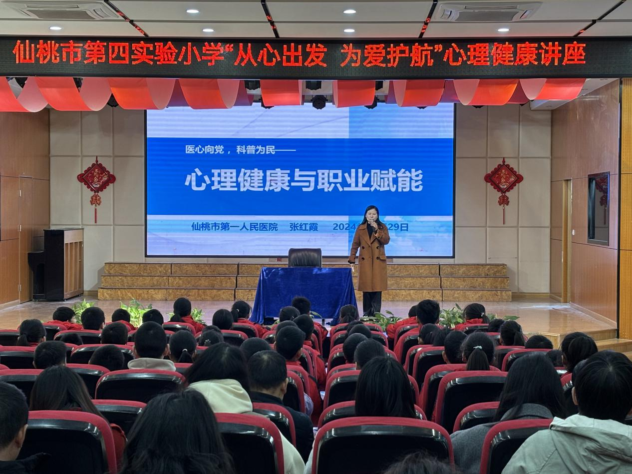 为进一步强化学校心理健康教育,培养学生阳光向上的心理品质,营造健康和谐的校园氛围,近日,仙桃市第四实验小学在致远楼学术报告厅成功举办了一场别开生面的心理健康讲座。担任此次专题讲座的是仙桃市心理卫生协会副会长、仙桃市第一人民医院心理咨询门诊专家张红霞医生。全体班主任和部分学生代表齐聚一堂,共同聆听了这场富有启发性的讲座。