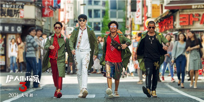 由陈思诚编剧、执导的电影《唐人街探案3》即将于2021年大年初一上映。在曼谷、纽约之后,《唐人街探案3》来到本格推理的热土东京,遭遇密室案件,难度全面升级。面对“系列之最”的难关,王宝强、刘昊然这对唐人街神探组合,将联合日本侦探妻夫木聪、泰国侦探托尼贾组成“亚洲侦探联盟”并肩作战。